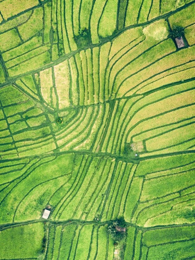 An aerial view of fields at a farm.